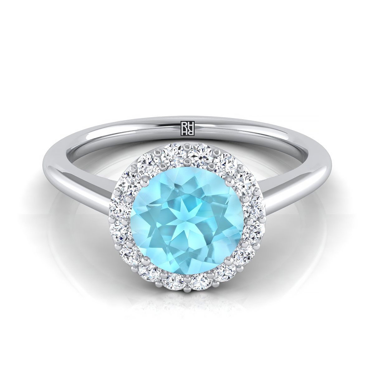 Platinum Round Brilliant Aquamarine Shared Prong Diamond Halo Engagement Ring -1/5ctw