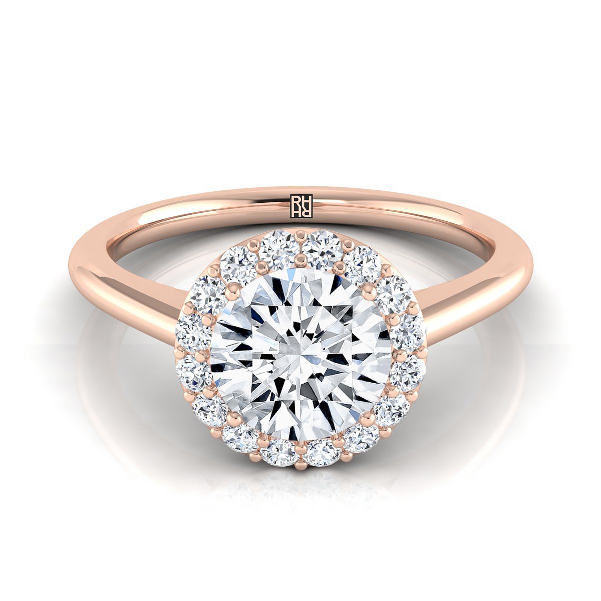 14K Rose Gold Round Brilliant Diamond Shared Prong Halo Engagement Ring -1/5ctw