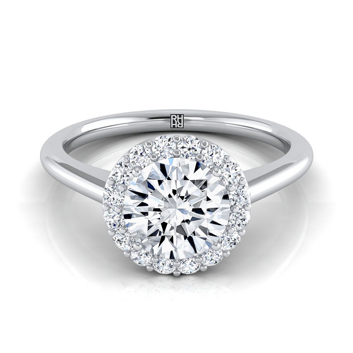 14K White Gold Round Brilliant Diamond Shared Prong Halo Engagement Ring -1/5ctw