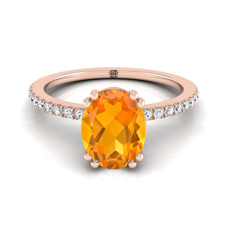 14K Rose Gold Oval Citrine Simple French Pave Double Claw Prong Diamond Engagement Ring -1/6ctw