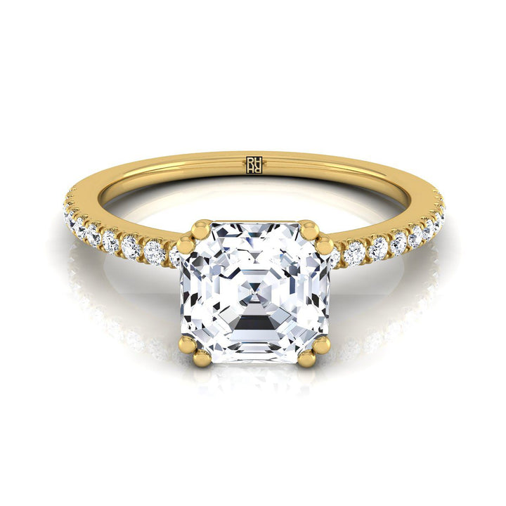 14K Yellow Gold Asscher Cut Diamond Simple French Pave Double Claw Prong Engagement Ring -1/6ctw