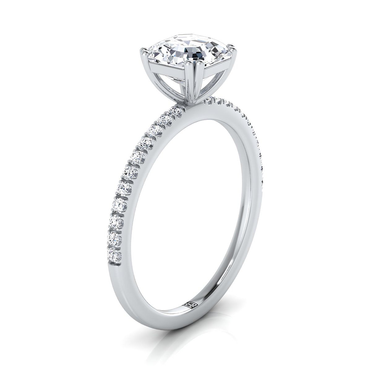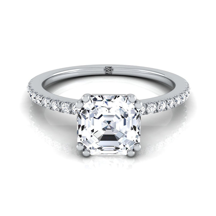 14K White Gold Asscher Cut Diamond Simple French Pave Double Claw Prong Engagement Ring -1/6ctw