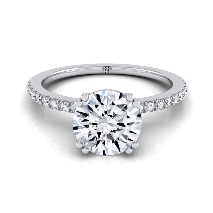 14K White Gold Round Brilliant Diamond Simple French Pave Double Claw Prong Engagement Ring -1/6ctw