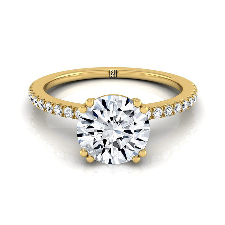 14K Yellow Gold Round Brilliant Diamond Simple French Pave Double Claw Prong Engagement Ring -1/6ctw