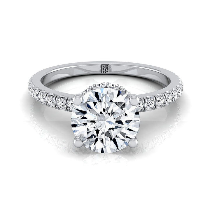 18K White Gold Round Brilliant Diamond Secret Diamond Halo French Pave Solitaire Engagement Ring -1/3ctw