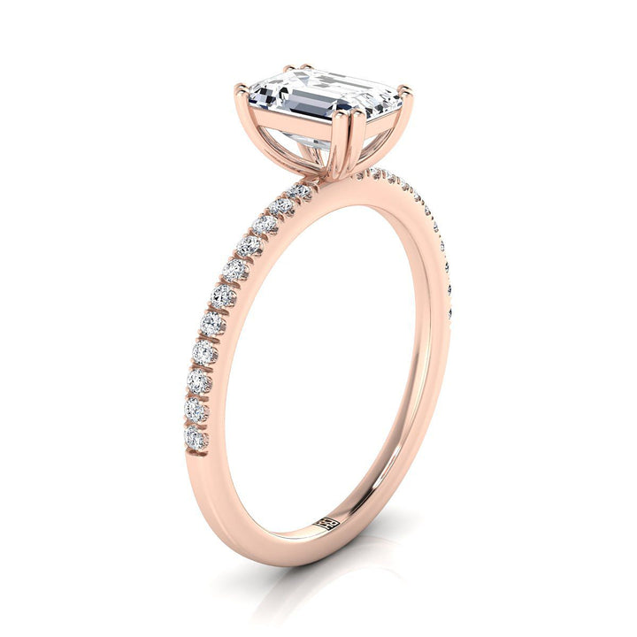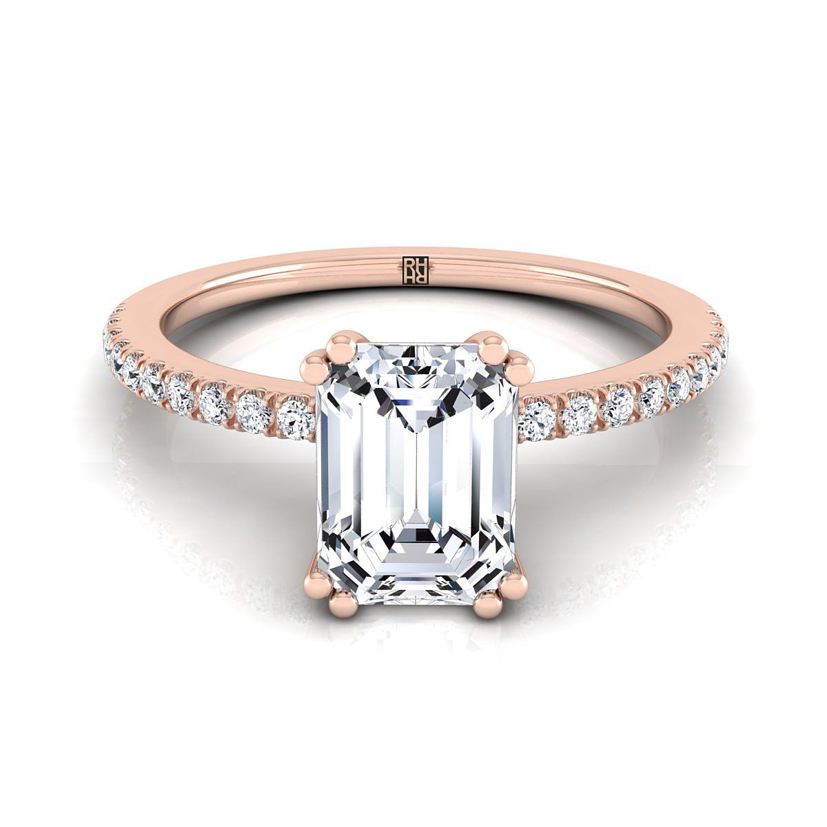 14K Rose Gold Diamond Simple French Pave Double Claw Prong Engagement Ring -1/6ctw