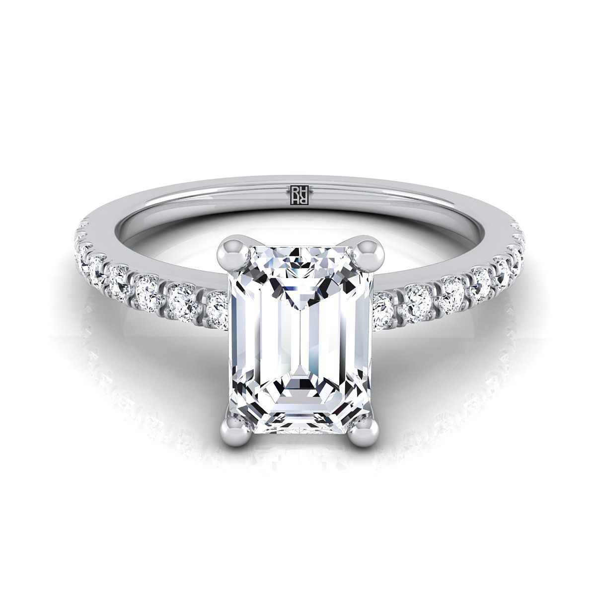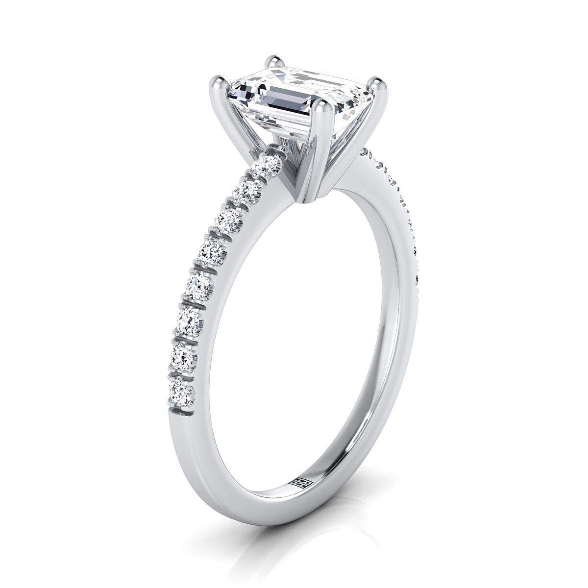 An Elegant Statement Of Style, This Petite Split Prong Emerald Cut Engagement Ring Showcases Brilliant Cut Diamonds (h-i/vs 0.20ctw) Beautifully Prong Set In 14k White Gold.