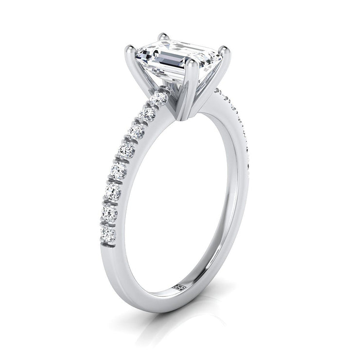 14K White Gold Emerald Cut Simple Linear Diamond Pave Engagement Ring -1/5ctw