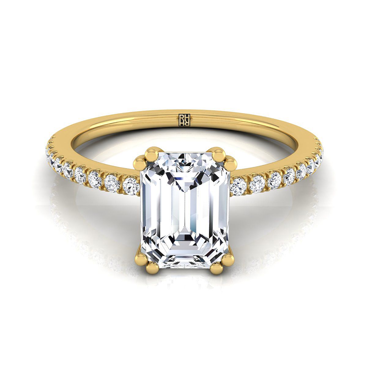 14K Yellow Gold Diamond Simple French Pave Double Claw Prong Engagement Ring -1/6ctw