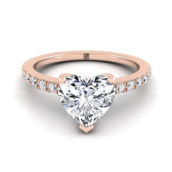 14K Rose Gold Heart Shape Center Simple Linear Diamond Pave Engagement Ring -1/5ctw