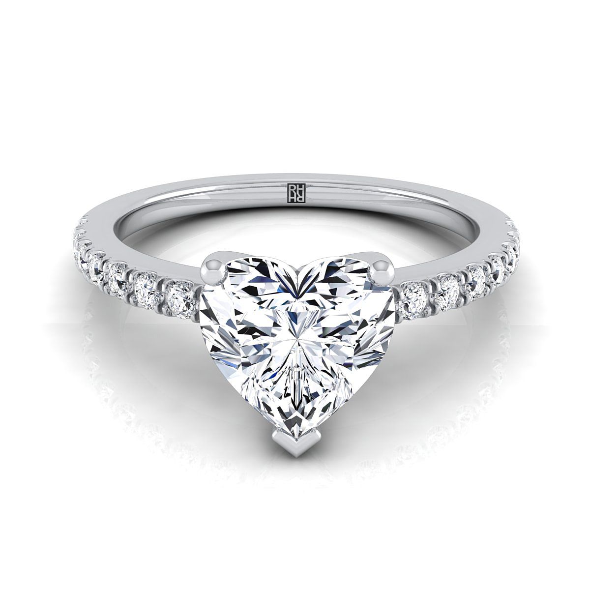 14K White Gold Heart Shape Center Simple Linear Diamond Pave Engagement Ring -1/5ctw