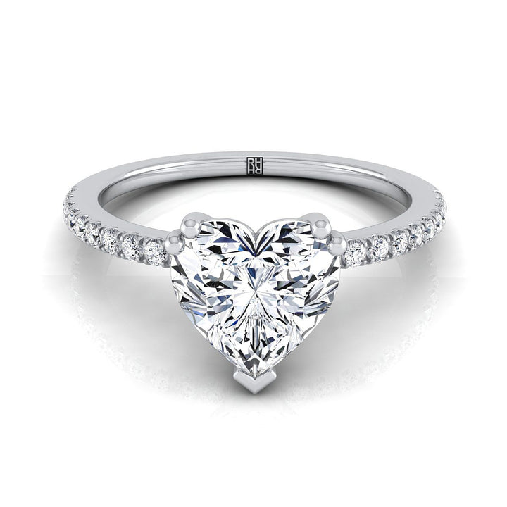14K White Gold Heart Shape Center Pink Sapphire Simple French Pave Double Claw Prong Diamond Engagement Ring -1/6ctw