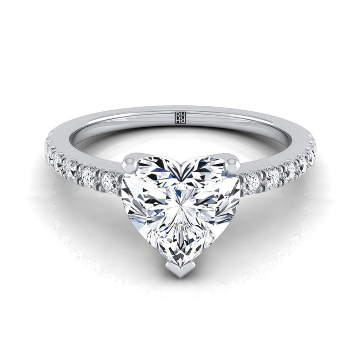 18K White Gold Heart Shape Center Simple Linear Diamond Pave Engagement Ring -1/5ctw