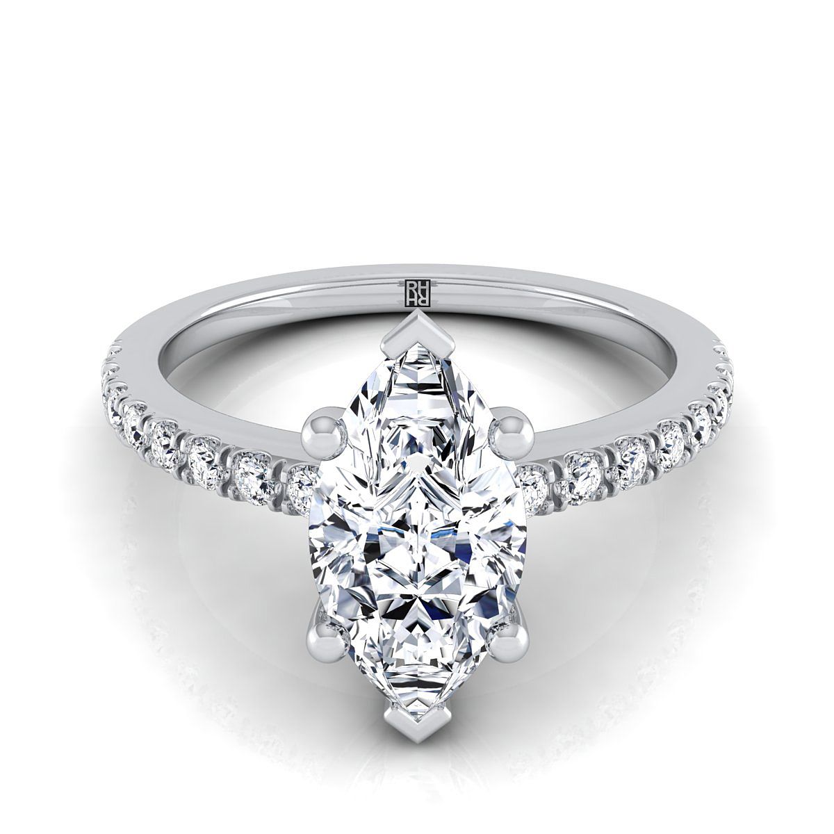 An Elegant Statement Of Style, This Petite Split Prong Marquise Engagement Ring Showcases Brilliant Cut Diamonds (h-i/vs 0.20ctw) Beautifully Prong Set In 14k White Gold.