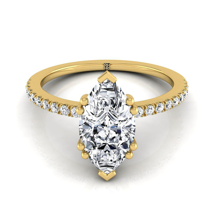 14K Yellow Gold Marquise Diamond Simple French Pave Double Claw Prong Engagement Ring -1/6ctw
