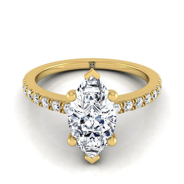 18K Yellow Gold Marquise Simple Linear Diamond Pave Engagement Ring -1/5ctw