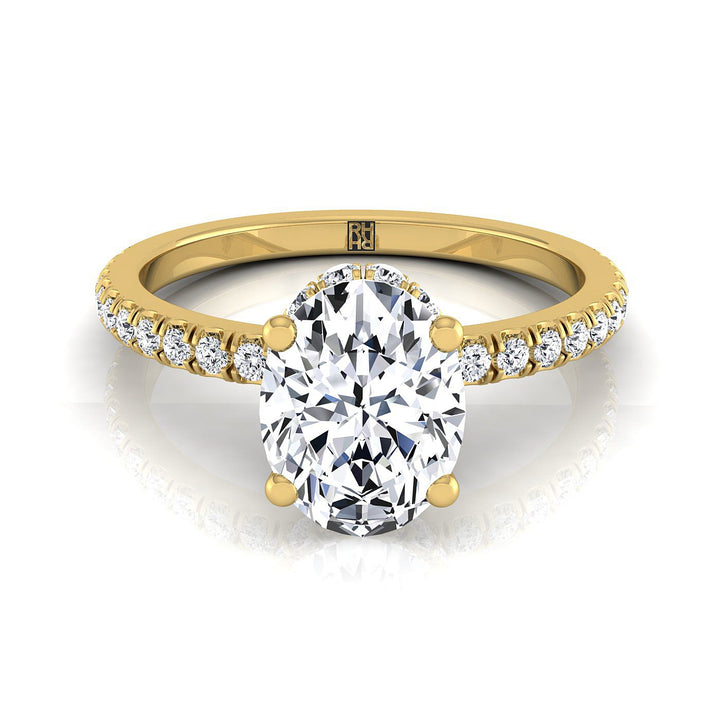 14K Yellow Gold Oval Diamond Secret Diamond Halo French Pave Solitaire Engagement Ring -1/3ctw