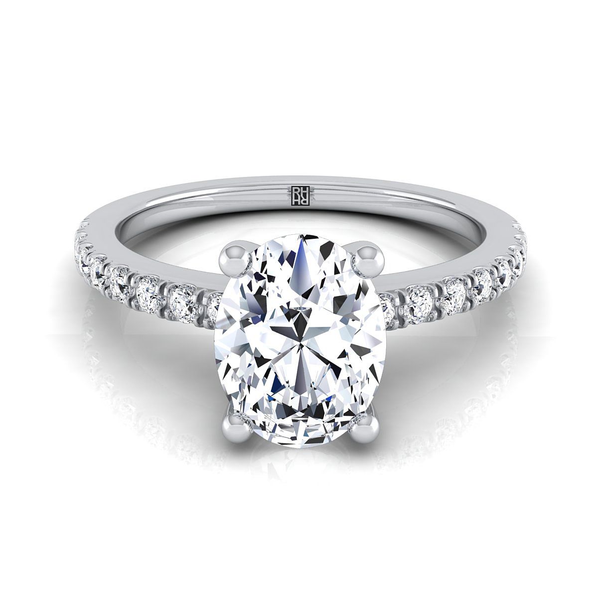 An Elegant Statement Of Style, This Petite Split Prong Oval Engagement Ring Showcases Brilliant Cut Diamonds (h-i/vs 0.20ctw) Beautifully Prong Set In Platinum.