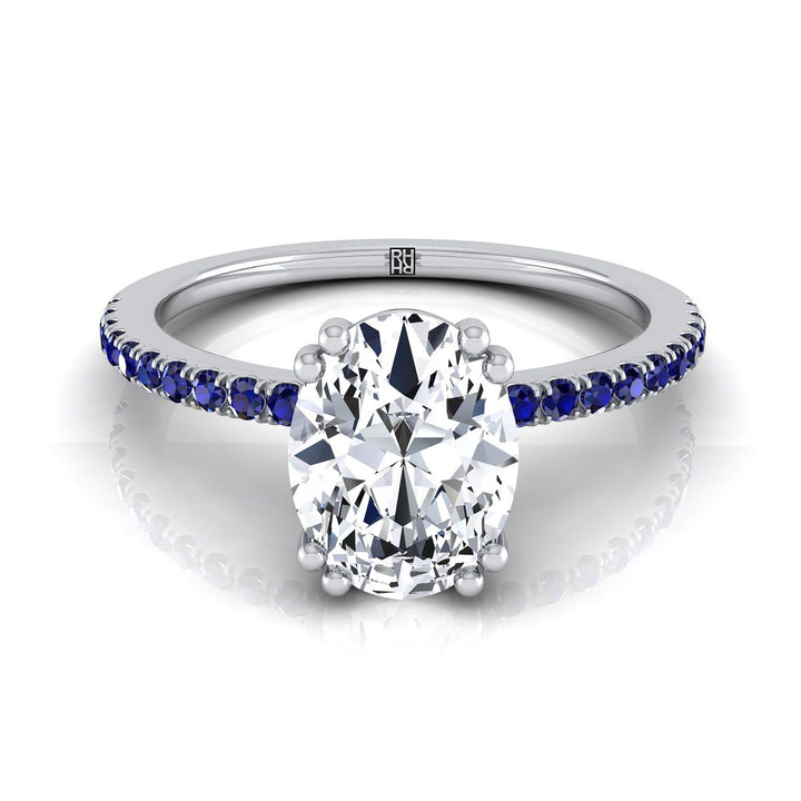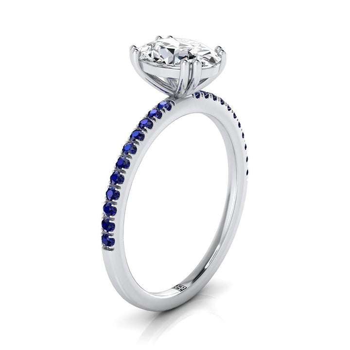 An Elegant Statement Of Style, This Oval Diamond Engagement Semi Mount Ring Showcases 22 Round Sapphires Beautifully Prong Set In 14k White Gold.