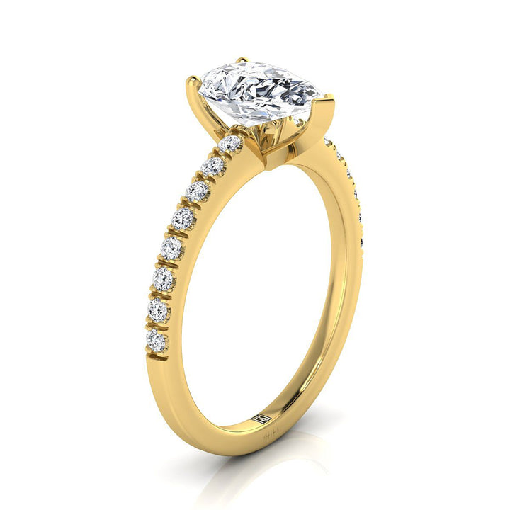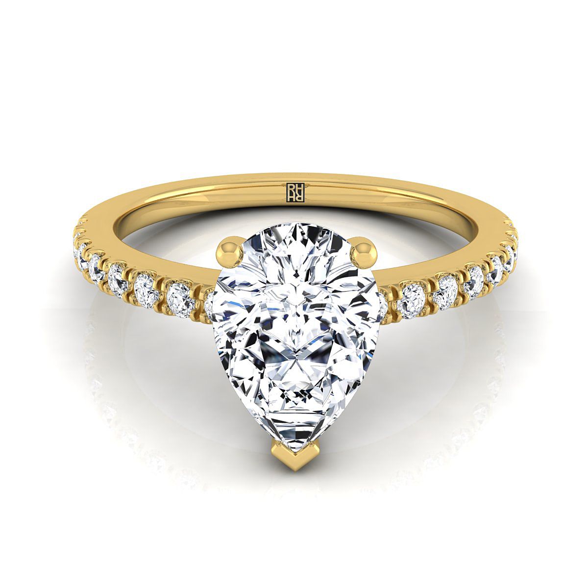 14K Yellow Gold Pear Shape Center Simple Linear Diamond Pave Engagement Ring -1/5ctw
