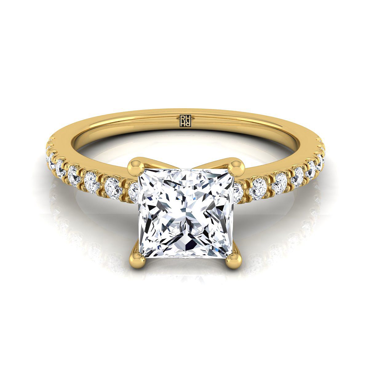 14K Yellow Gold Princess Cut Simple Linear Diamond Pave Engagement Ring -1/5ctw