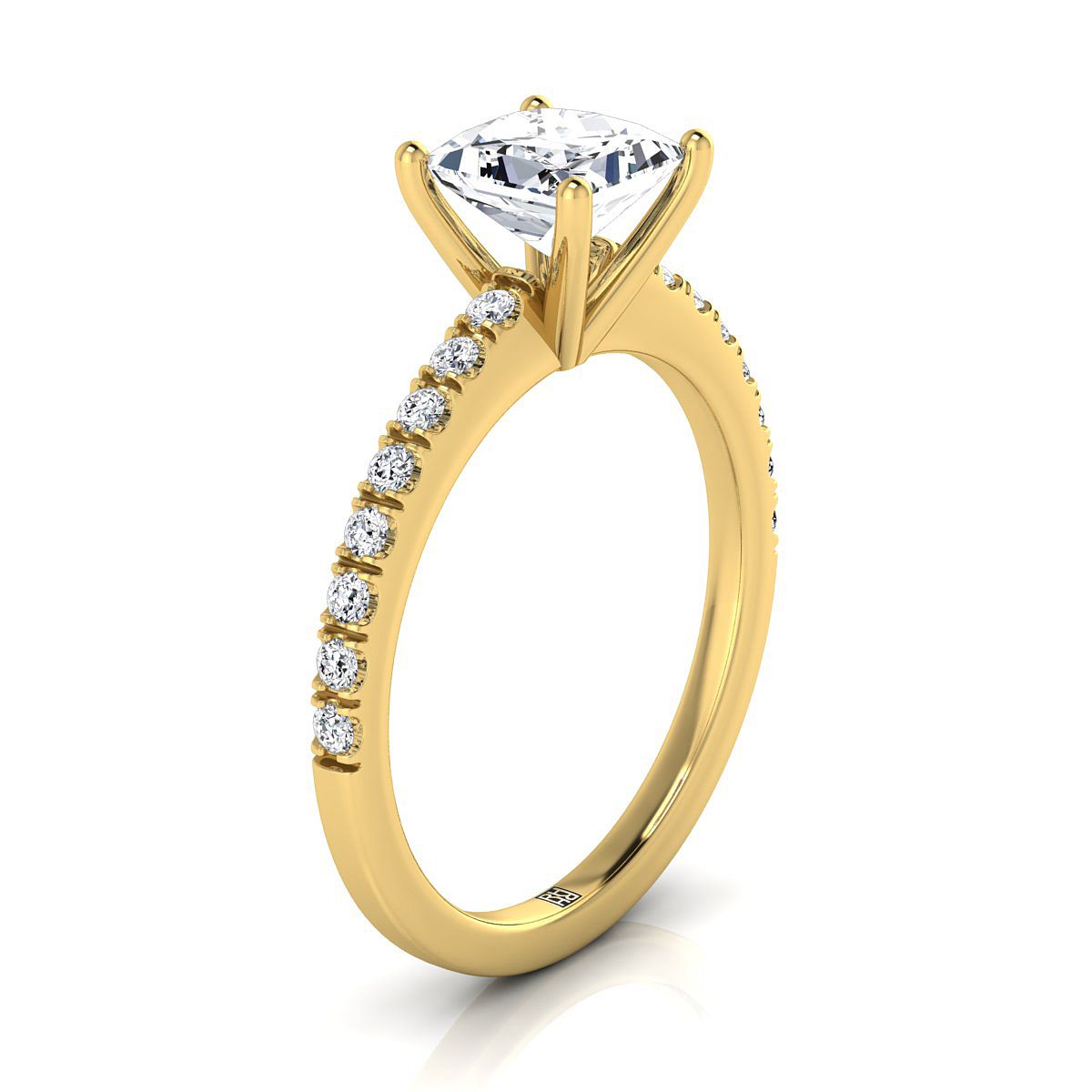 18K Yellow Gold Princess Cut Simple Linear Diamond Pave Engagement Ring -1/5ctw