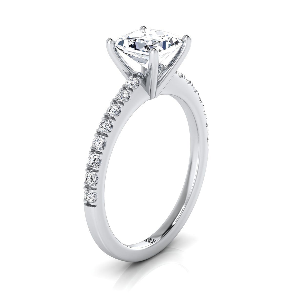 An Elegant Statement Of Style, This Petite Split Prong Princess Cut Engagement Ring Showcases Brilliant Cut Diamonds (h-i/vs 0.20ctw) Beautifully Prong Set In Platinum.