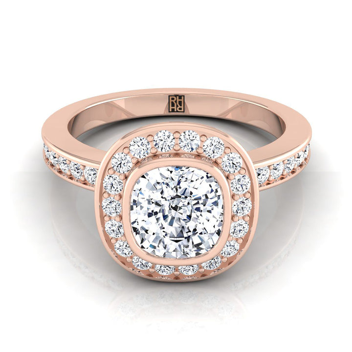 14K Rose Gold Cushion Diamond Matching Halo and Channel Band Engagement Ring -3/8ctw