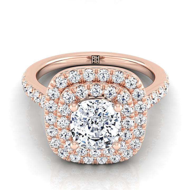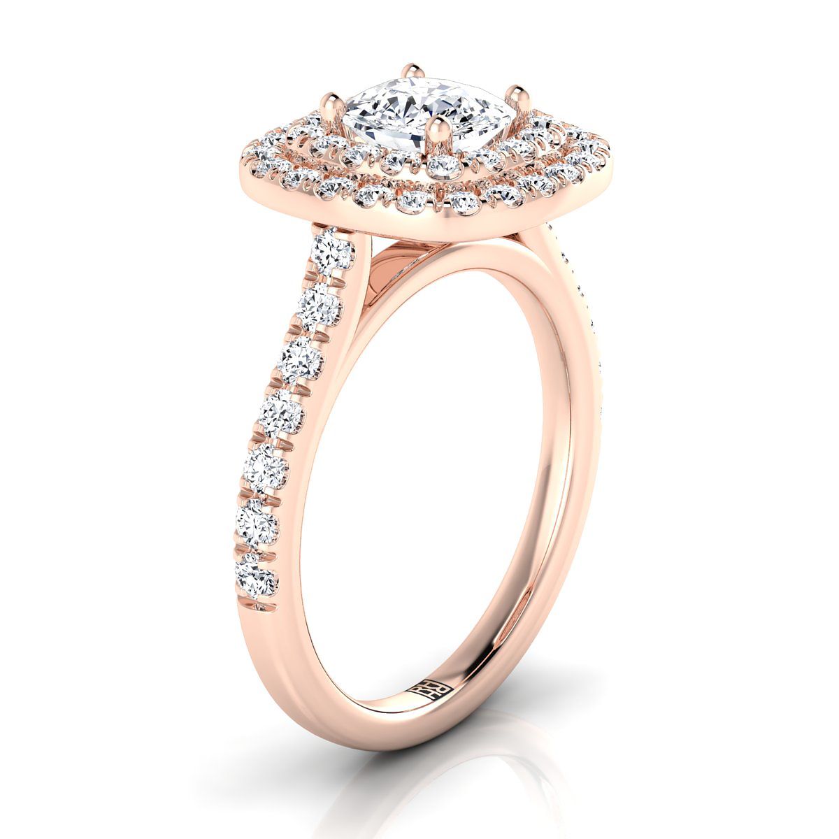 Exquisitely Handcrafted, This Double Pave Cushion Cut Halo Engagement Ring Showcases Brilliant Cut Diamonds (h-i/vs 0.75 Ctw) Beautifully Pave Set In A Classic 14k Rose Gold Setting.