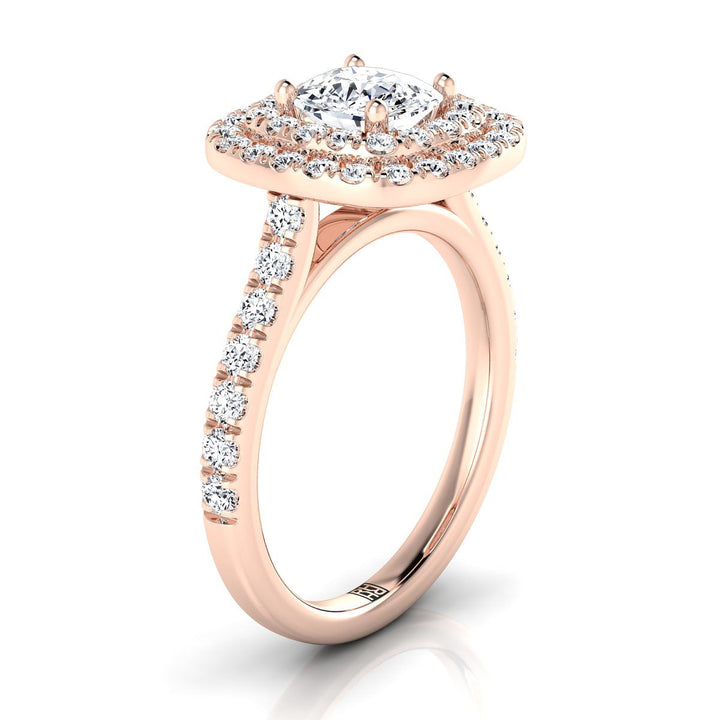 14K Rose Gold Cushion Double Pave Halo with Linear Diamond Engagement Ring -3/4ctw