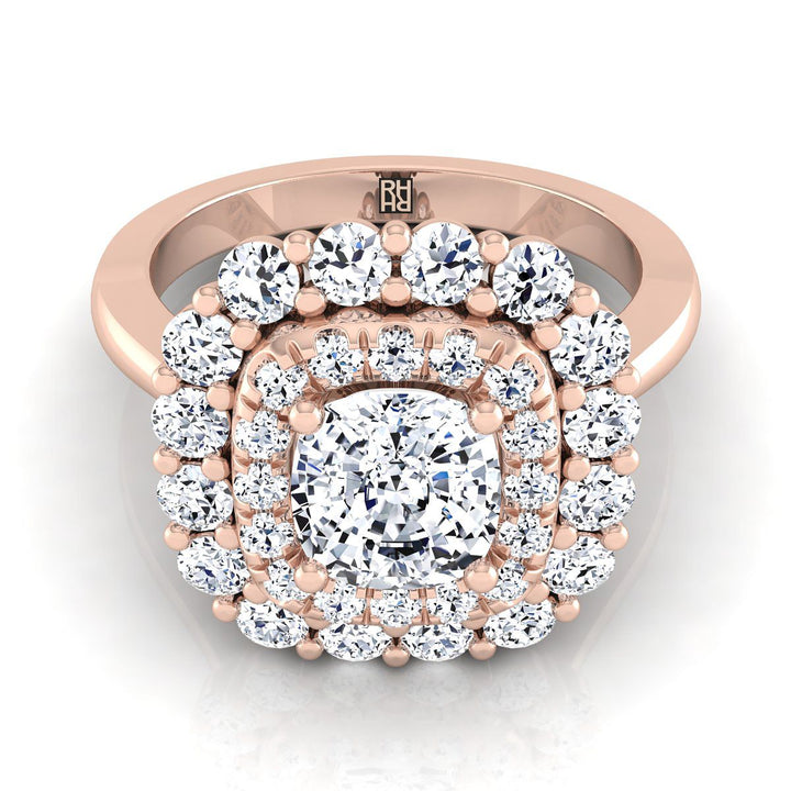 14K Rose Gold Cushion Diamond Double Halo Floral Sunburst Engagement Ring -1ctw