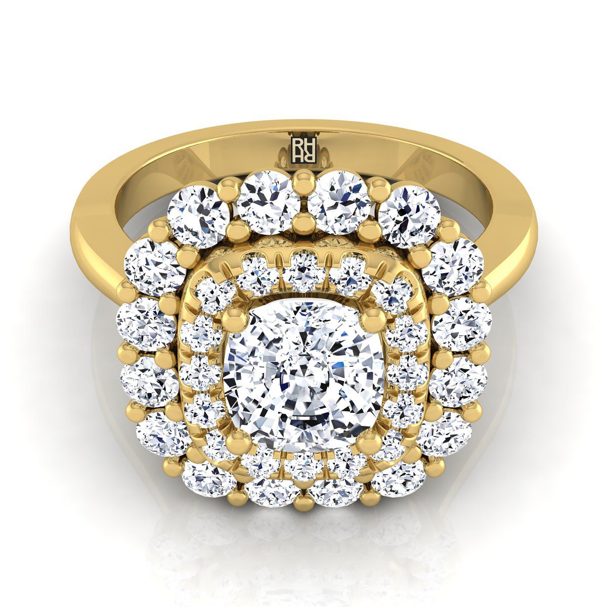 Exquisitely Handcrafted, This Double Pave Halo Engagement Ring Showcases Brilliant Cut Diamonds (h-i/vs 0.95ctw) Beautifully Set In A Classic 18k Yellow Gold Setting.