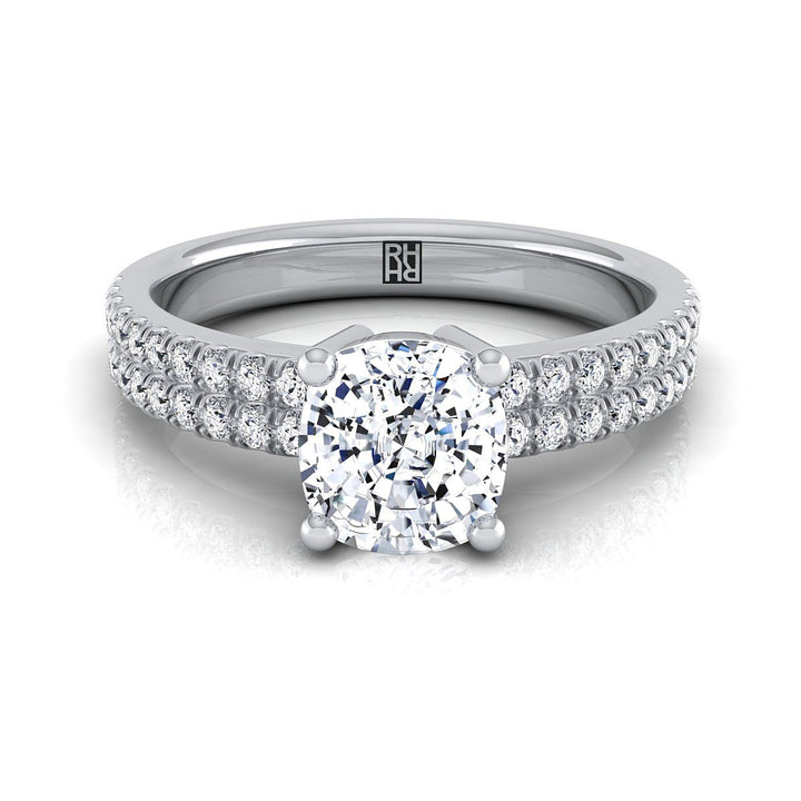 18K White Gold Cushion Diamond Double Pave Row Engagement Ring -1/4ctw