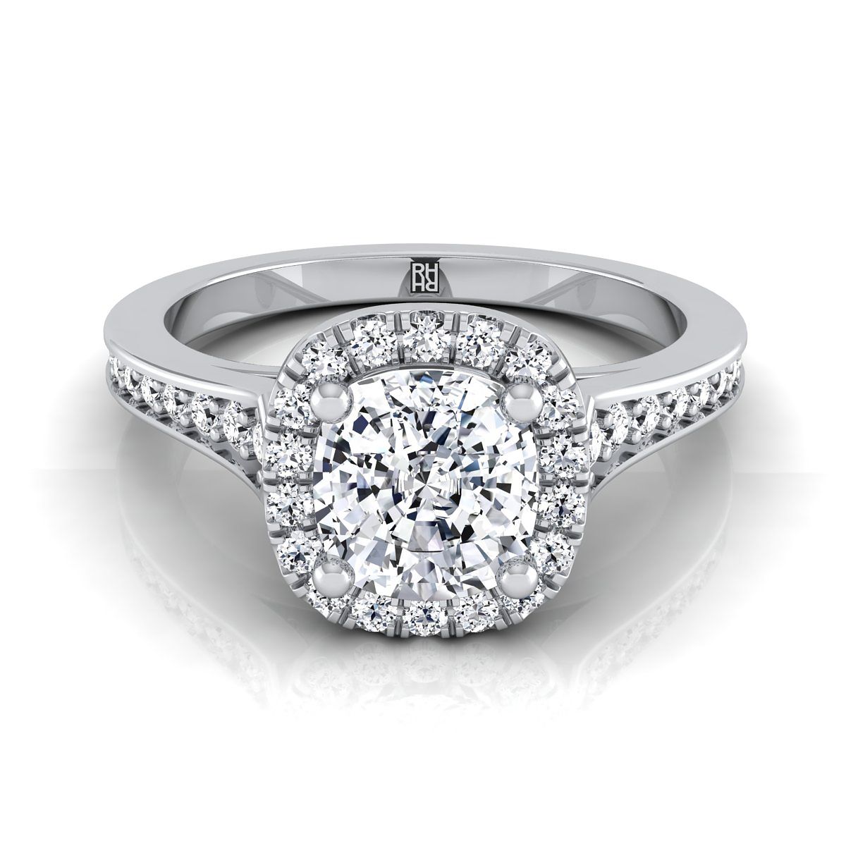 14K White Gold Cushion Diamond Classic Halo with Channel French Pave Engagement RIng -1/3ctw