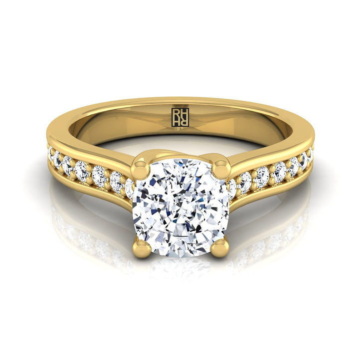 14K Yellow Gold Cushion Diamond Channel Set Engagement Ring -1/3ctw