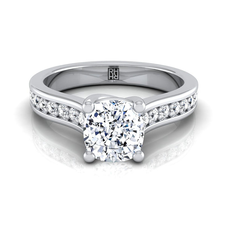 Platinum Cushion Diamond Channel Set Engagement Ring -1/3ctw