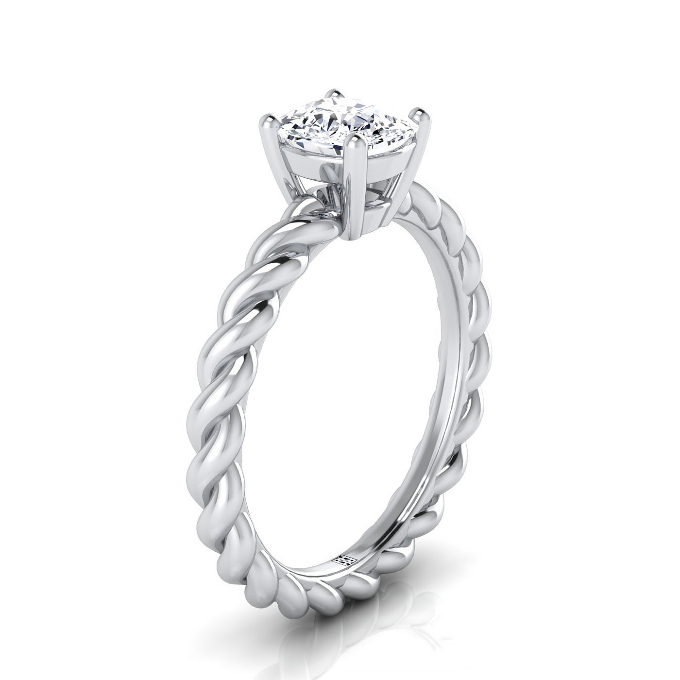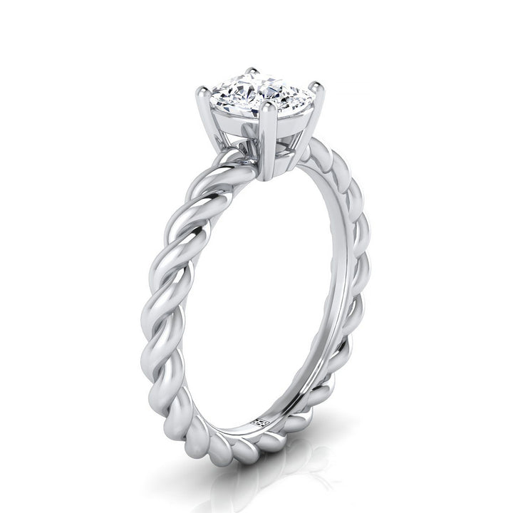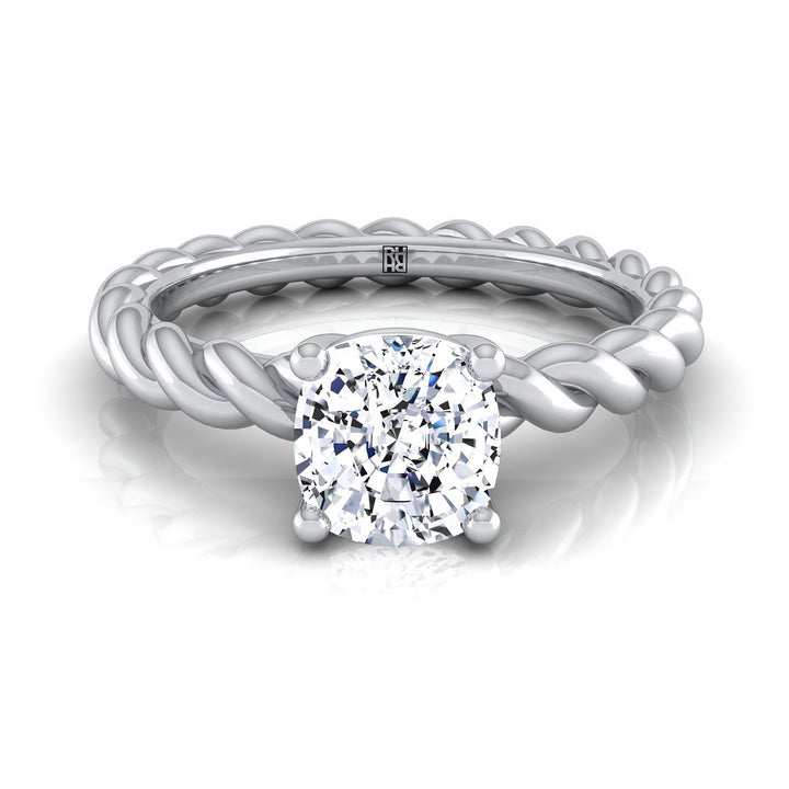 18K White Gold Cushion Twisted Rope Braid Solitaire Band