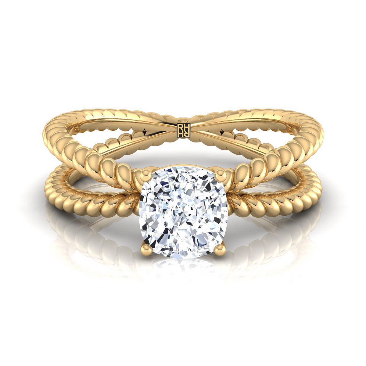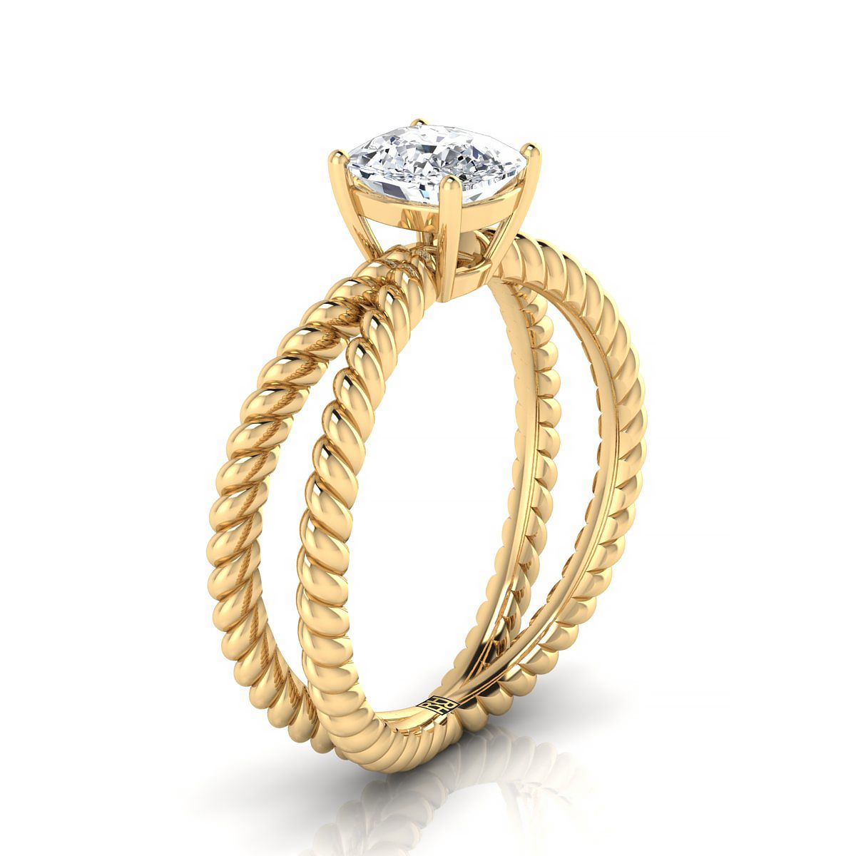 18K Yellow Gold Cushion Criss Cross Twisted Rope Solitaire Engagement Ring
