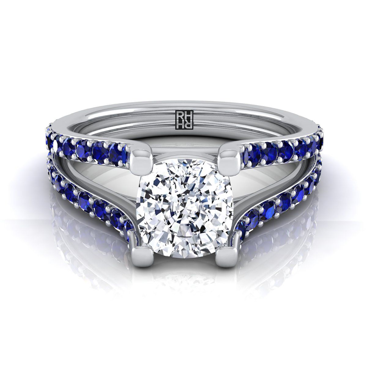 14K White Gold Cushion Prong Set Sapphire Split Shank Engagement Ring