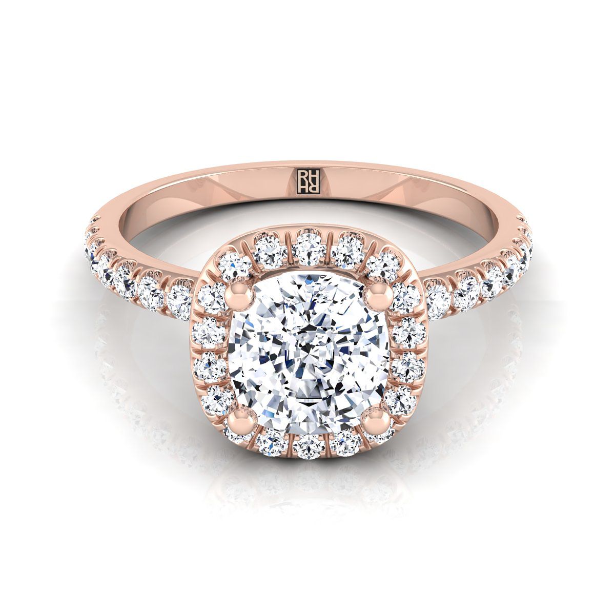 14K Rose Gold Cushion Classic Halo Linear Diamond Engagement Ring -1/3ctw