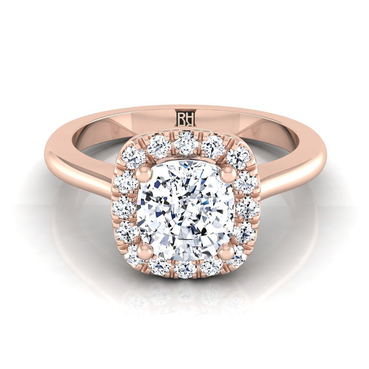14K Rose Gold Cushion Diamond Classic Halo French Pave Engagement Ring -1/4ctw