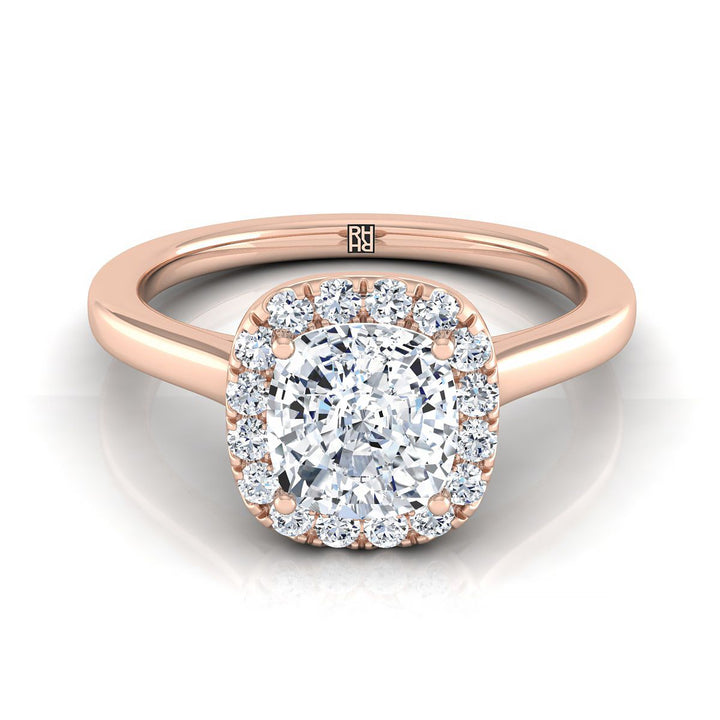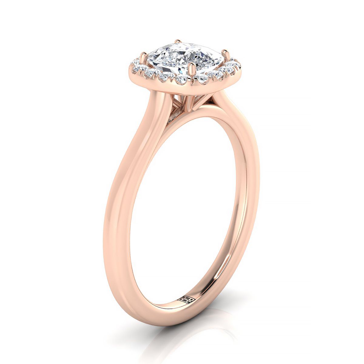 14K Rose Gold Cushion Diamond Modern Halo French Pave Engagement Ring -1/6ctw