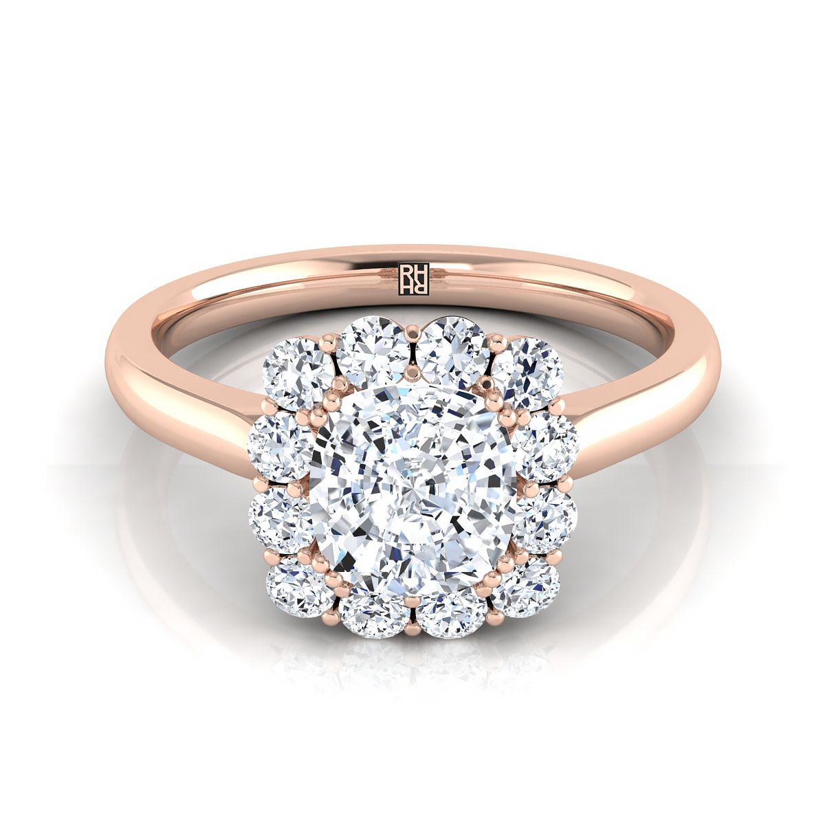 Classic In Design, This Cushion Cut Diamond Halo Engagement Ring Showcases Brilliant Cut Diamonds (h-i/vs 0.40ctw) Exquisitely Prong Set In A Refined 14k Rose Gold Setting.