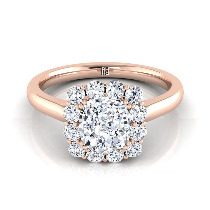 14K Rose Gold Cushion Diamond Floral Halo Engagement Ring -1/3ctw