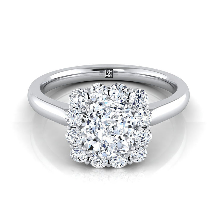Classic In Design, This Cushion Cut Diamond Halo Engagement Ring Showcases Brilliant Cut Diamonds (h-i/vs 0.40ctw) Exquisitely Prong Set In A Refined 14k White Gold Setting.