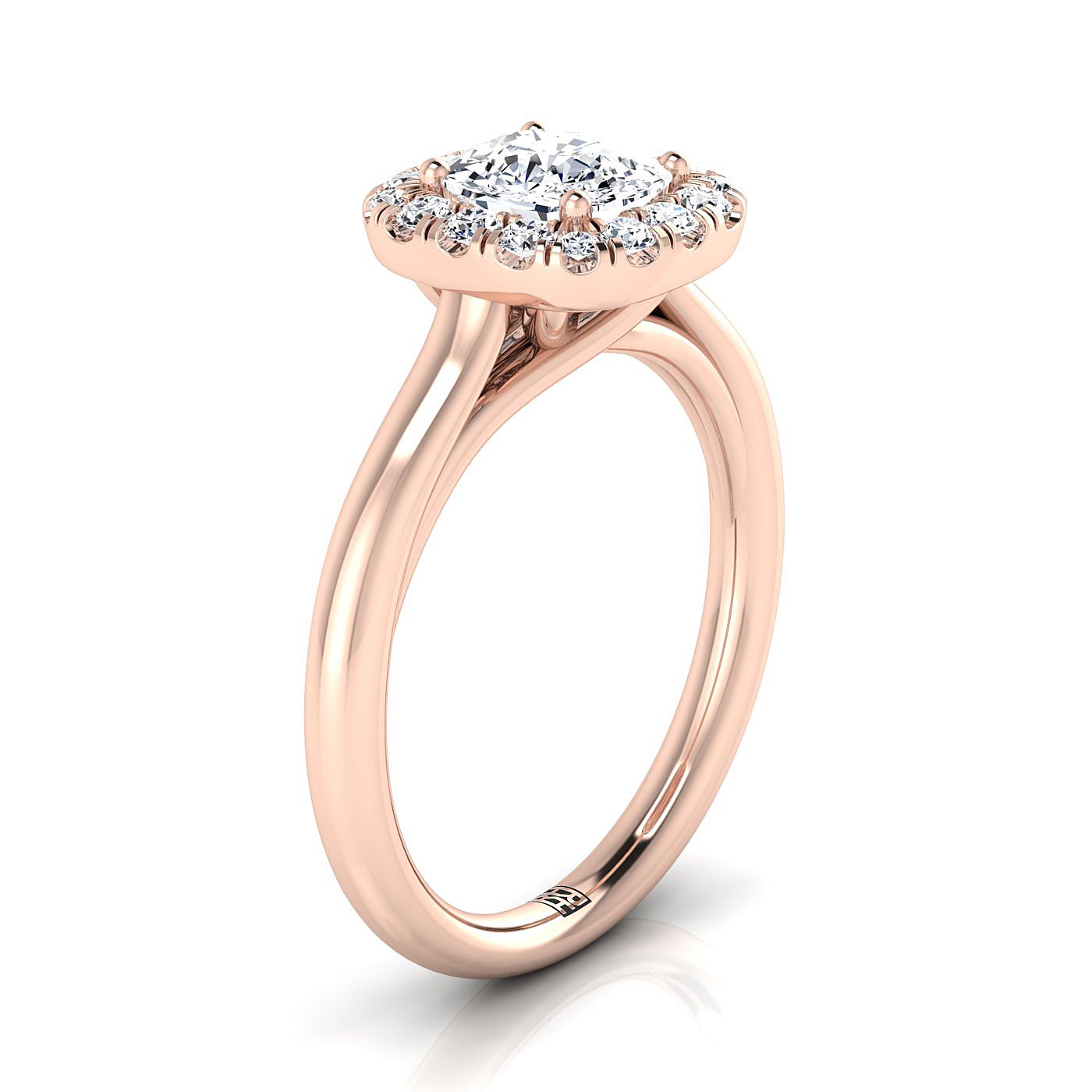 18K Rose Gold Cushion Diamond Sophisticated and Simple Halo on a High Polished Engagement Ring -1/4ctw
