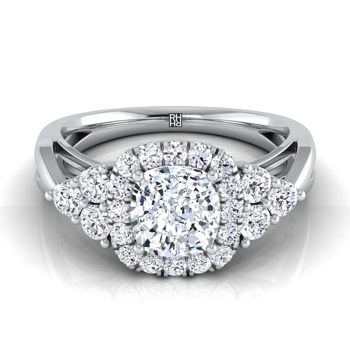 18K White Gold Cushion Open Twisted Triple Diamond Engagement Ring -5/8ctw