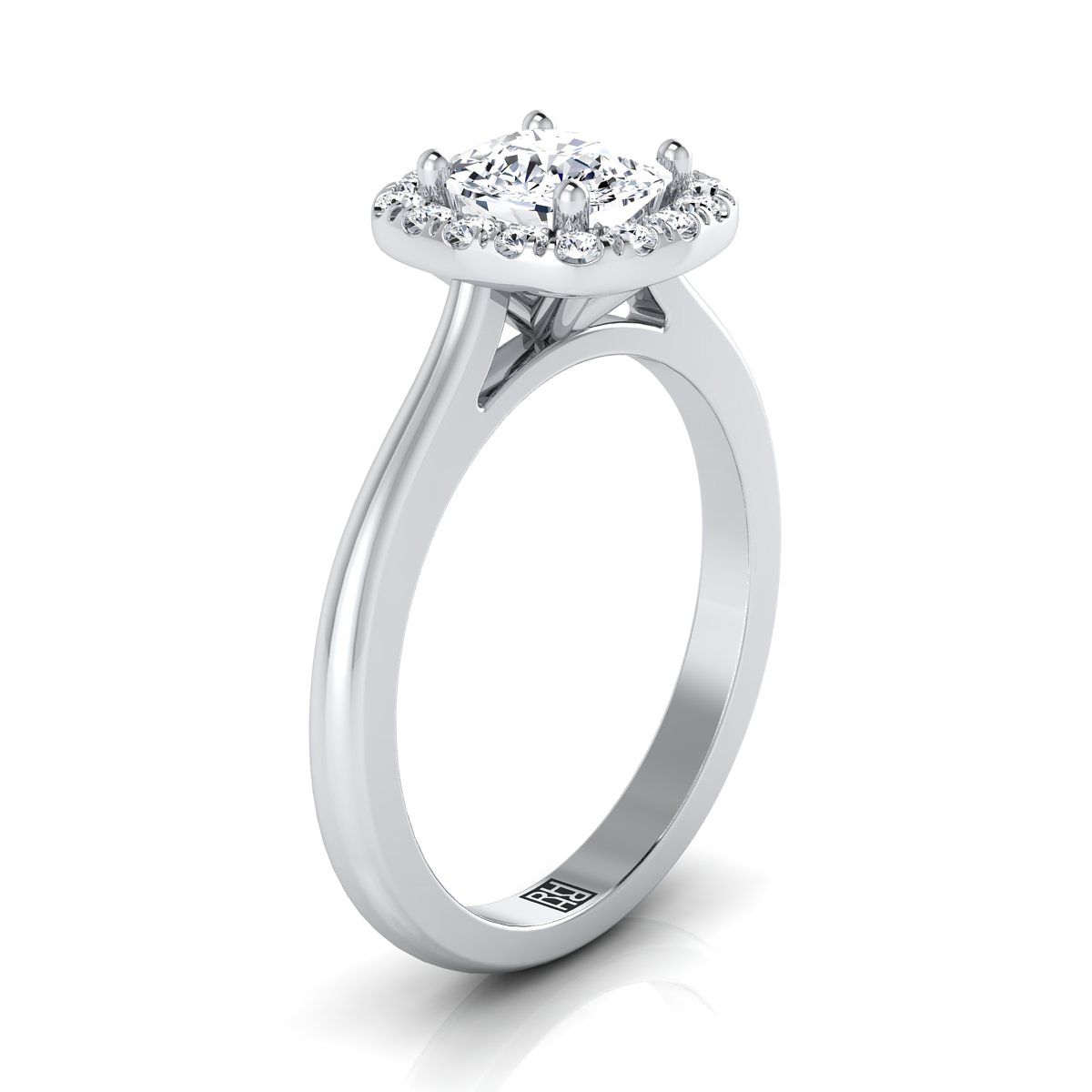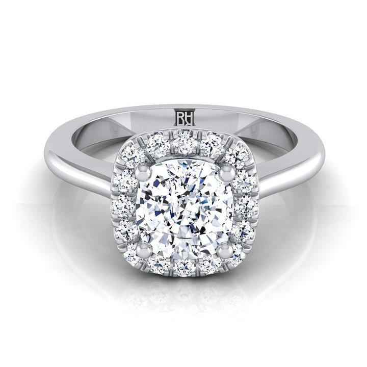 Platinum Cushion Diamond Classic Halo French Pave Engagement Ring -1/4ctw