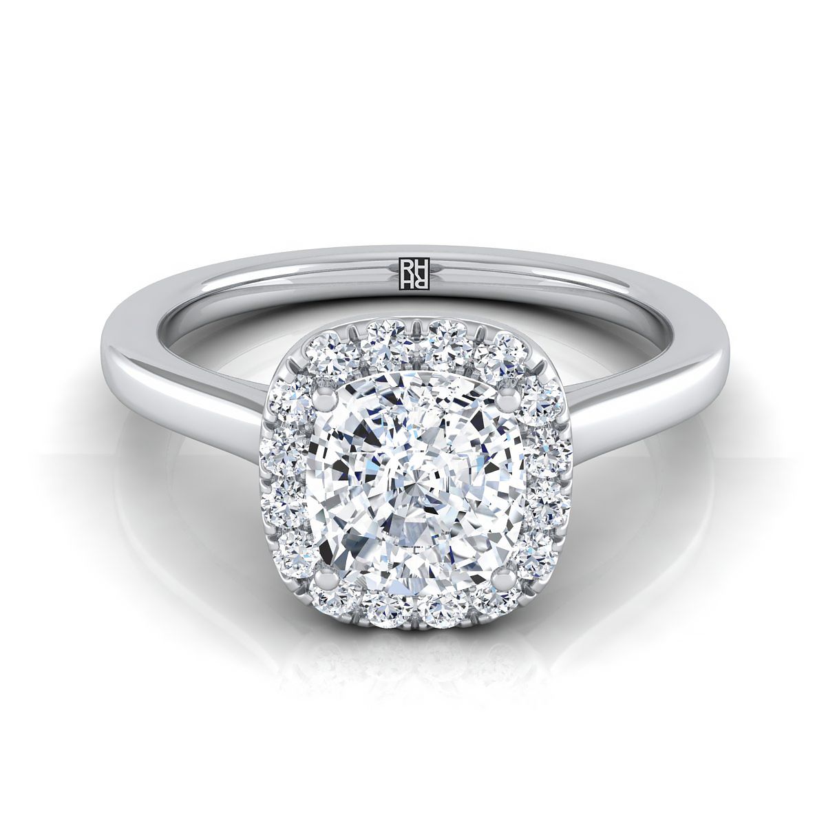 Exquisitely Handcrafted, This Pave Cushion Cut Halo Engagement Ring Showcases Brilliant Cut Diamonds (h-i/vs 0.125ctw) Beautifully Set In A Classic Platinum Setting.