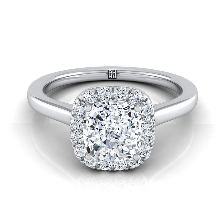 Platinum Cushion Diamond Modern Halo French Pave Engagement Ring -1/6ctw